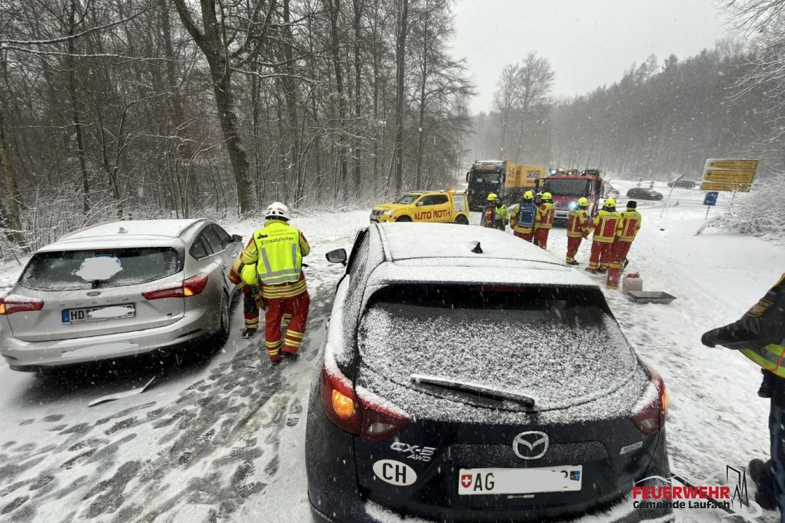 Dort gab es bei winterlichen Straßenverhältnissen einen Unfall mit drei beteiligten PKW. Von den fünf Fahrzeuginsassen wiesen zwei Personen leichte Verletzungen auf. Die Feuerwehr übernahm die Erstversorgung der Verletzten bis zur Übernahme durch den Rettungsdienst, sicherte die Einsatzstelle ab, stellte den Brandschutz sicher und nahm ausgelaufene Betriebsstoffe auf.