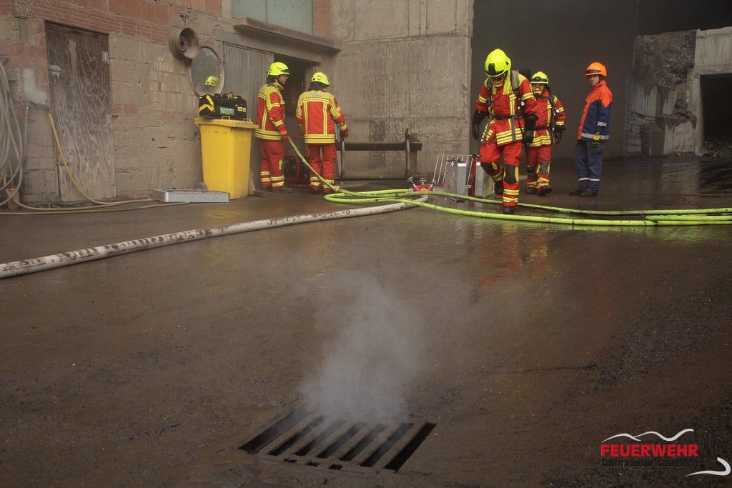 • Ebenfalls wegen der Verpuffung stürzte ein Mitarbeiter in eine Box mit kleinkornigem Recyclingmaterial und wurde dabei bis zum Hals verschüttet
