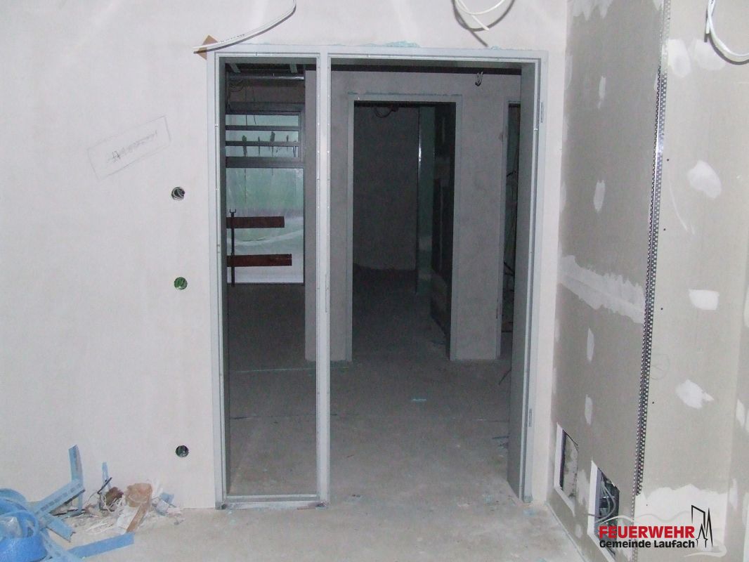 Im Innern wurden in dieser Woche die Zwischentüren (Zargen) gesetzt, ebenfalls montiert wurde der „Werkstattschlauch“ der Absauganlage.
