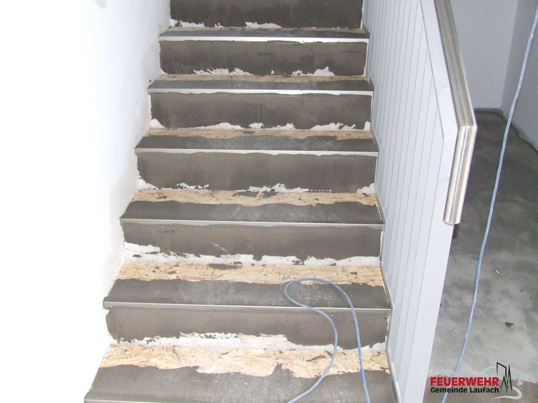 Im östlichen Treppenhaus und auch in den Räumen im Obergeschoss wurde der Linoleumboden verlegt, im westlichen Eingangsbereich wurde der Boden ebenfalls verlegt, hier fehlt nur noch der Bodenbelag auf der eigentlichen Treppe.