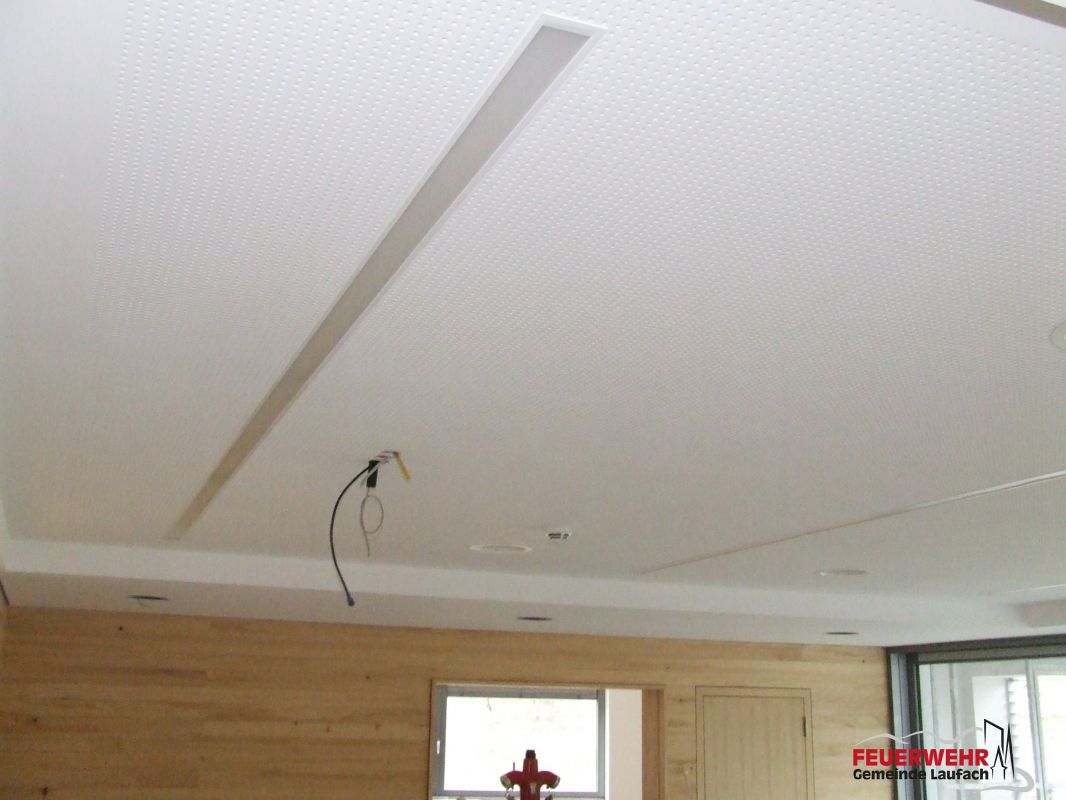 Im Bereitschaftsraum wurde die Akustik-Decke ebenfalls fertiggestellt und auch die Lampen verbaut.