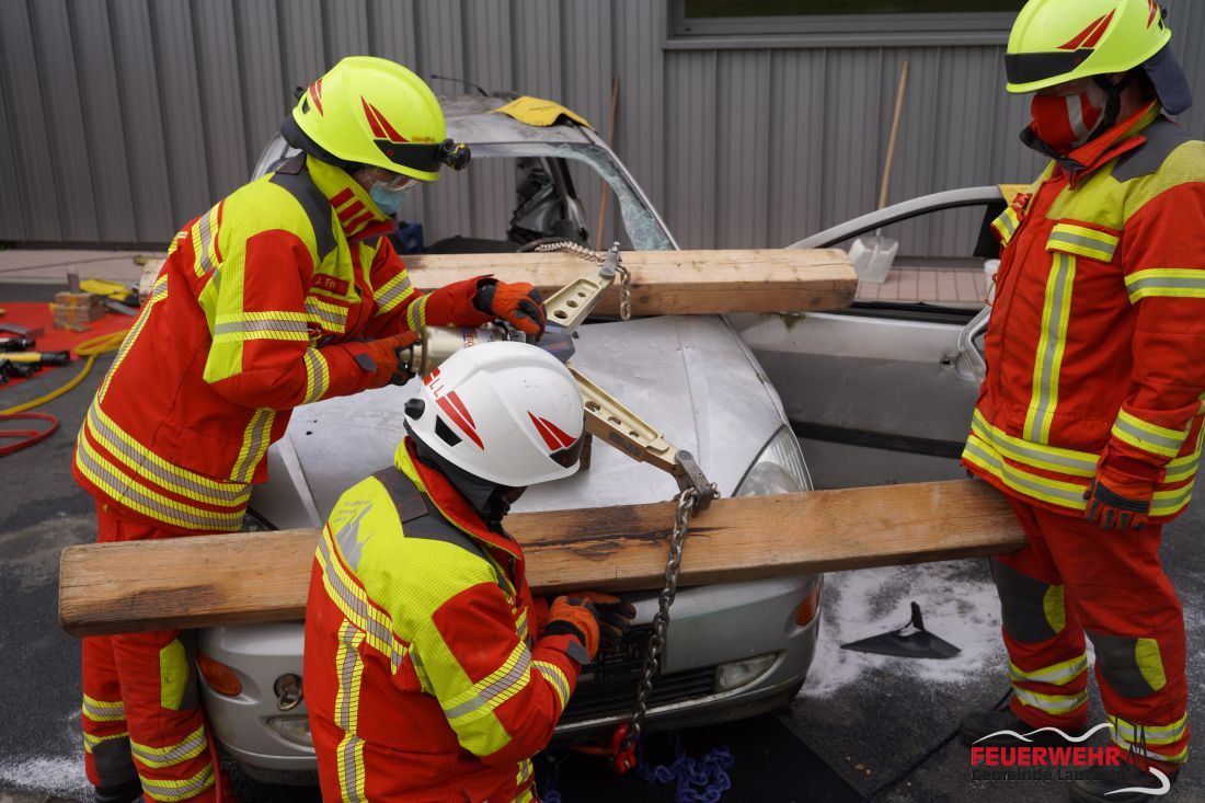 - Ketteneinsatz mit Spreizer zur Rettung von stark eingeklemmten Personen