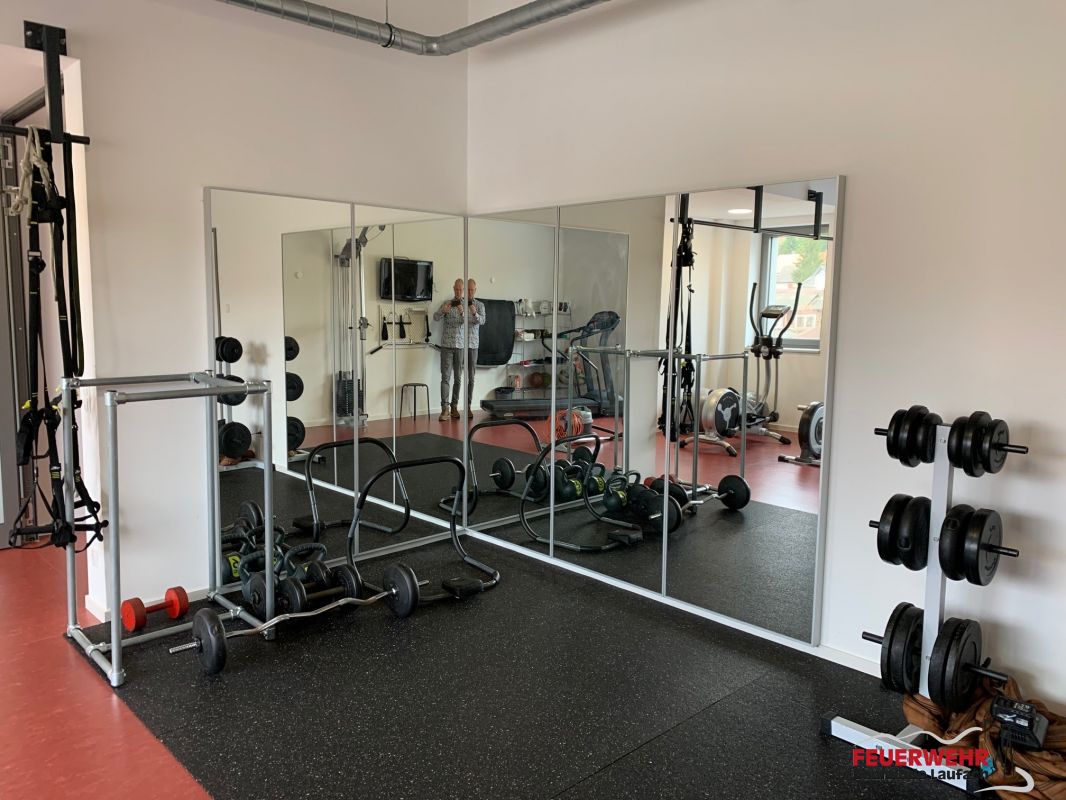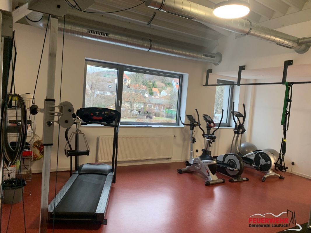In enger Kooperation mit den Planern von Lengfeld&Wilisch, und mit Zustimmung der Gemeinde, konnte im Obergeschoss des Ostflügels ein letzlich 36 qm großer Sportraum ausgewiesen werden. Der Feuerwehrverein Laufach, der sich die Förderung des Sports in der Wehr zur Aufgabe gemacht hat, übernahm die Kosten für eine Duschnische in Höhe von 4.875 €.