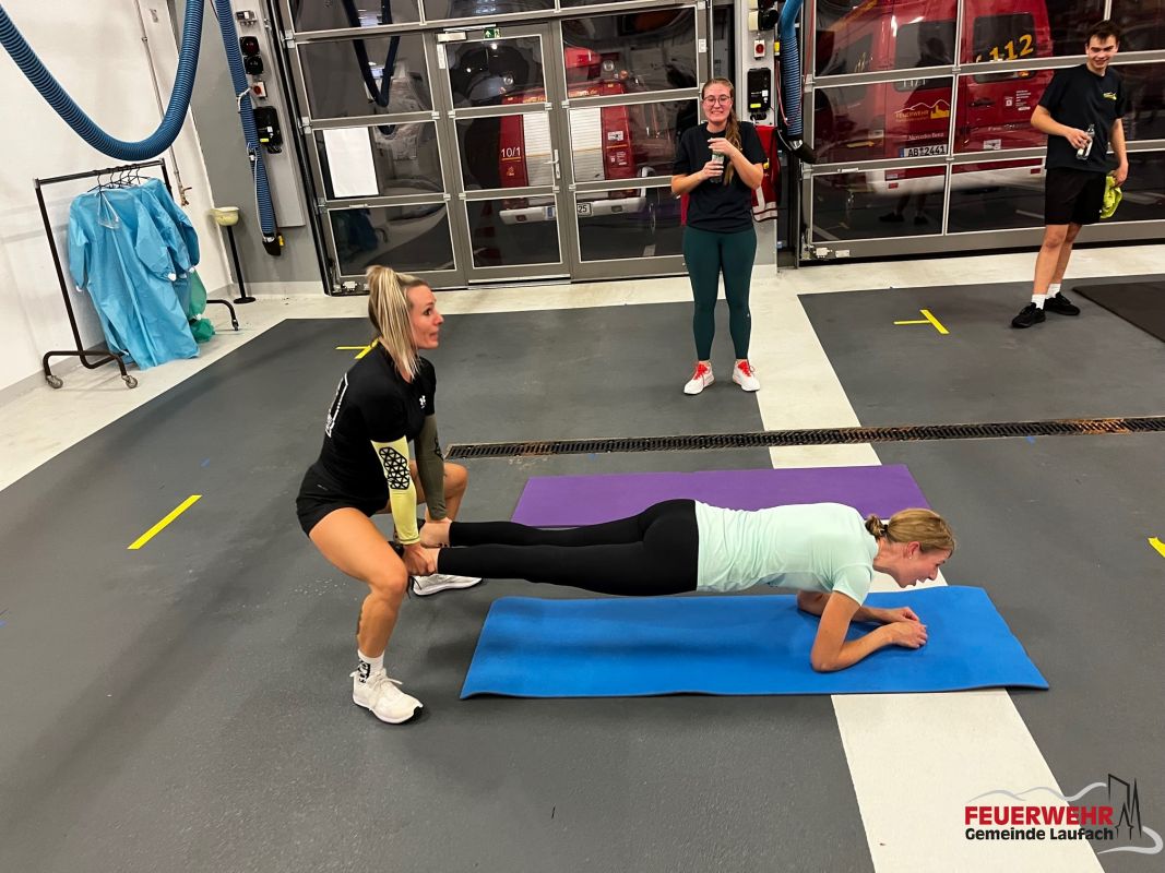 Am Montag, dem 17.10.22 fand wieder ein Fitness-Training in der Fahrzeughalle statt. Fitness-Coach Miriam Kunkel forderte von dem Dutzend Teilnehmer einiges ab, so dass sich am nächsten Tag viele bisher unbekannte Muskeln in Erinnerung riefen.
