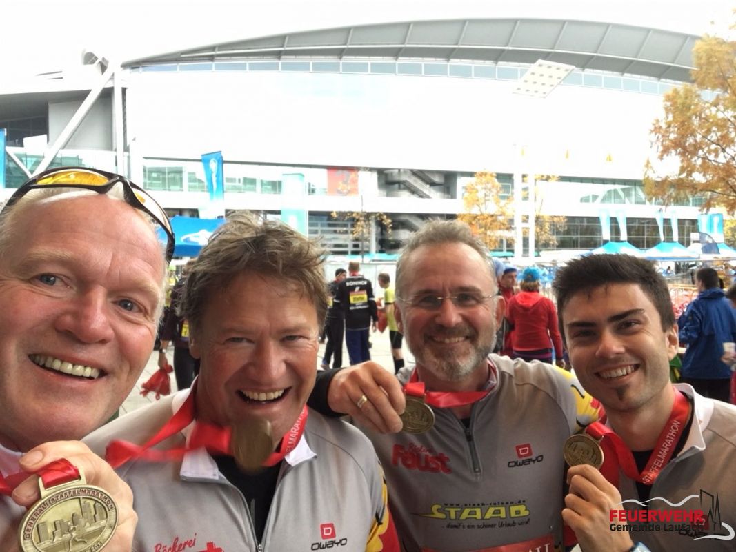 Außer uns traten weitere zehn Feuerwehrmannschaften in der Staffel an, von denen wir acht hinter uns lassen konnten und so den 2. Platz der inoffiziellen Feeurwehrwertung erzielten. Ein Super Laufevent, das Lust auf „mehr“ machte - mehr laufen bzw. „mehr Kilometer“ - vielleicht sogar beim nächsten Mal die ganzen 42,195km?!