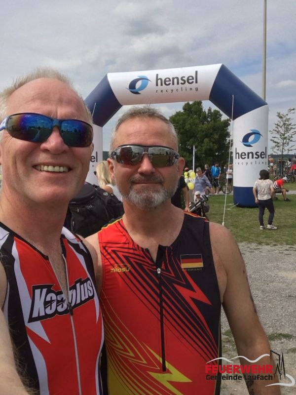 Doppelstart am Wochenede: Christian Strecker und Christof Fleckenstein jeweils nach dem Rotarylauf und dem Niedernberger Triathlon