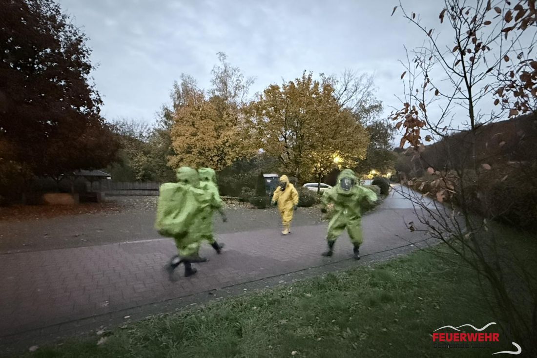 Am Montag, den 20.10.2025 fand bei der Freiw. Feuerwehr Laufach die jährliche Atemschutzübung mit Chemieschutzanzügen (CSA) statt. Wie wichtig eine regelmäßige Ausbildung und Übungen in diesem Bereich sind, zeigte die Gefahrstofffreisetzung vor wenigen Wochen in Mainaschaff sehr eindrucksvoll.