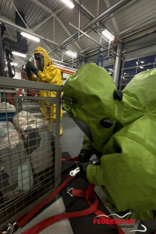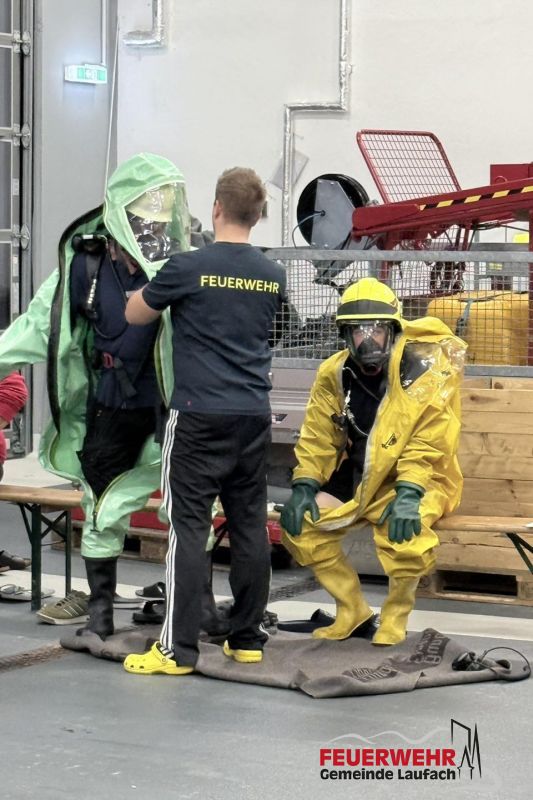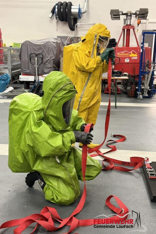 Jährliche Gewöhnungsübung Chemiekalieschutzanzüge