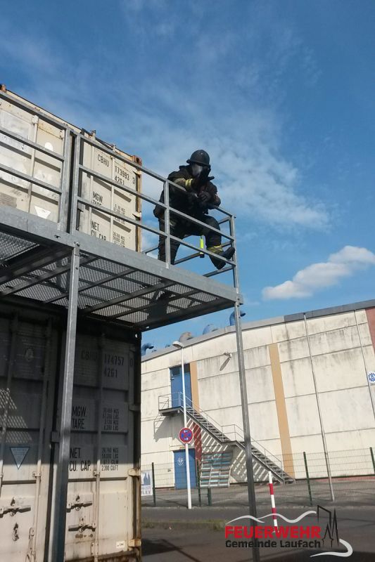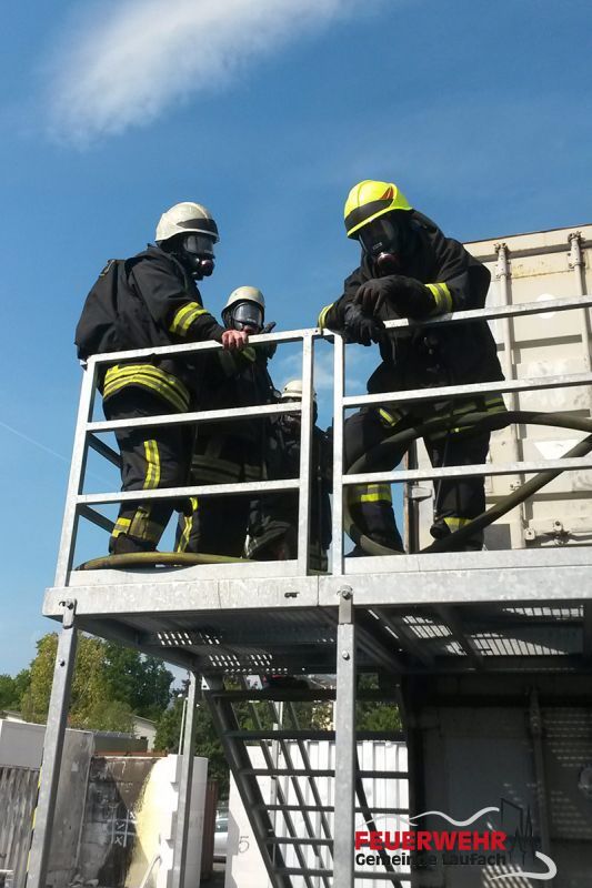 Im ersten Durchgang - der Wärmegewöhnung - musste zuerst ein Hindernisparcours im Container 1 sowie ein Zimmer in Containter 2 abgesucht werden. In Container 3 - dem eigentlichen Brandraum mit Feuerstelle - wurde durch die Ausbilder gezeigt welche verschiedenen Rauchschichten es geben kann und wie sich diese weiterentwickeln. Eine falsche Löschtechnik mit zuviel Wasser konnte auch direkt am eigenen Körper gespürt werden - denn der heiße Wasserdampf durchdringt sehr schnell die Einsatzkleidung.