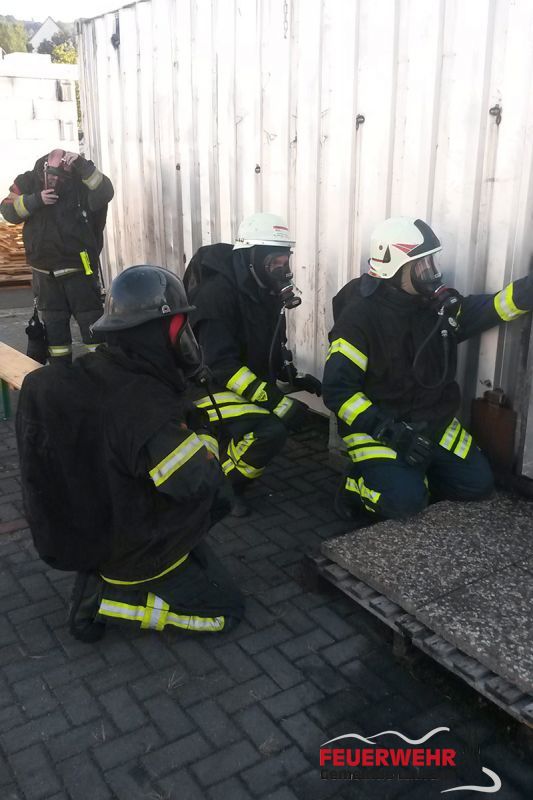 In der Einsatzübung mussten 2 Trupps ein unbekanntes Gebäude absuchen und die dort gefundenen Gegenstände den Ausbildern zurückmelden. Ein Trupp war der Suchtrupp, der zweite als Sicherungstrupp mit Strahlrohr.