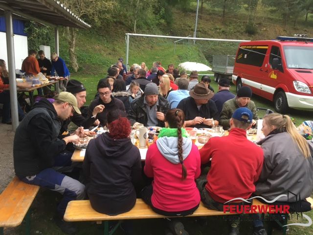 Rund 60 Mitglieder kamen über den Tag verteilt an die Feuerstelle an der Josefshütte des FC Laufach. Danke an dieser Strelle dem FC für das Überlassen der Lokalität! Außerdem waren ein Dutzend Kinder aus der Kinderfeuerwehr zu Besuch, um Stockbrot zu machen und Würste zu brutzeln.