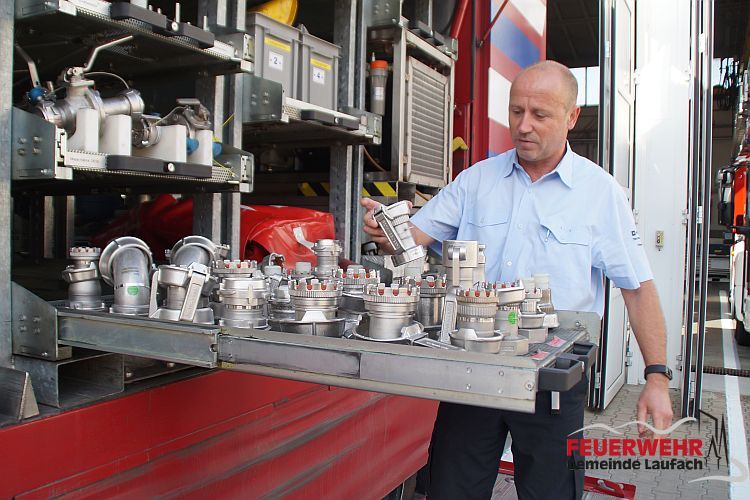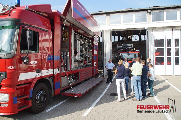 Jörg Pfrang, Leiter des abwehrenden Brandschutzes, nahm uns in Empfang und präsentierte in eine Einführung die Aufgaben und Anforderungen an die BASF Werkfeuerwehr. Im Feuerwehrhof wurden uns dann der Rüstwagen und das ULF als Beispiele des umfangreichen Fuhrparks vorgeführt.