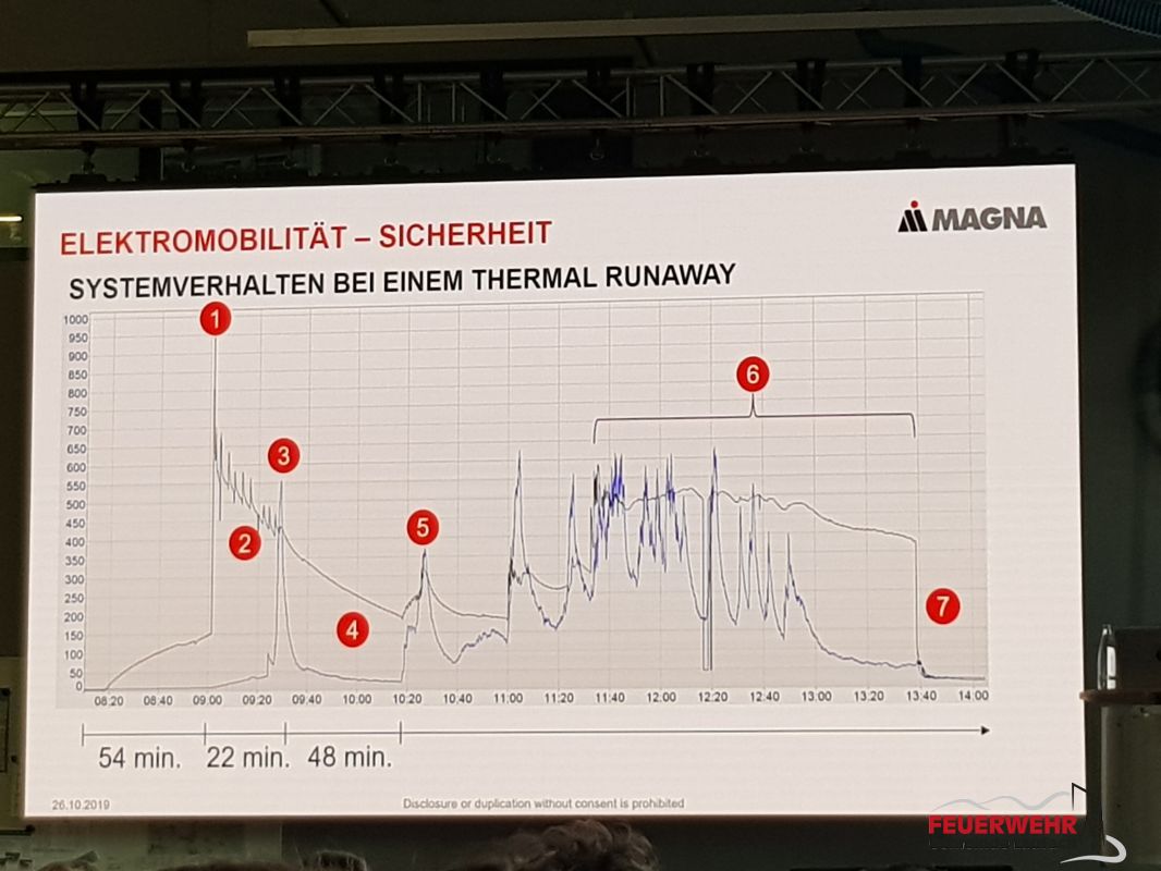 Markus Staab von der Firma Firma Magna ging auf aktuelle Trends in der Elektromobilität ein und zeigte Beispiele von Crashtests mit Batteriesystemen und Elektrofahrzeugen, welche vor der Freigabe bestanden werden müssen. Anhand von Messdaten zeigte er das Systemverhalten einer Batterie bei einem Thermal Runaway.