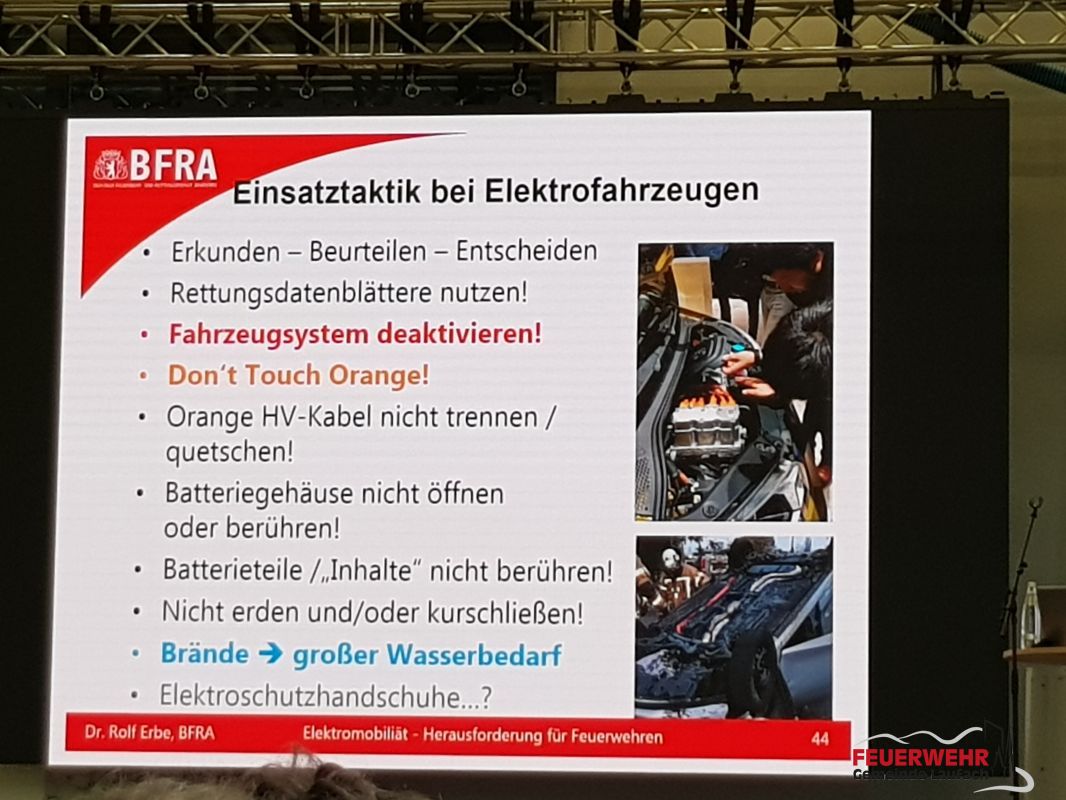 Anschließend ging er auf die aus der Praxis bewährte Einsatztaktik bei Elektrofahrzeugen ein.
