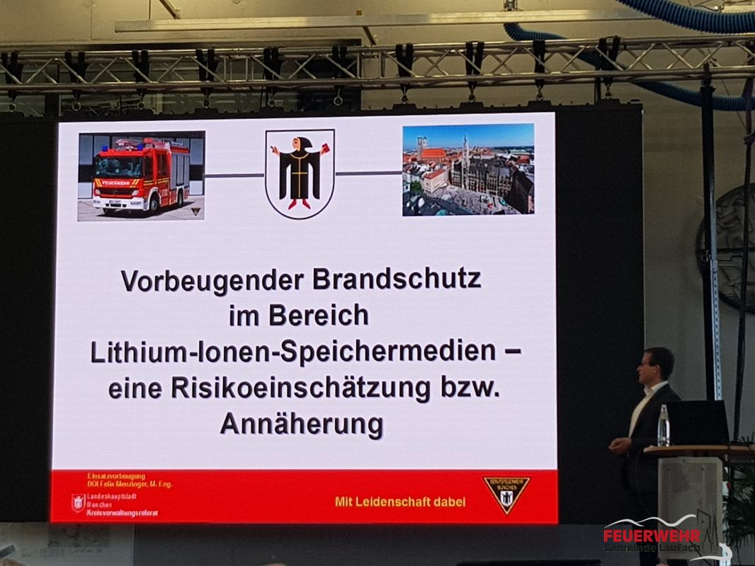 Im Anschluss ging es um den vorbeugenden Brandschutz im Bereich von Lithium-Ionen-Speichermedien. Der Dozent Felix Menzinger von der Berufsfeuerwehr München gab hier eine Risikoeinschätzung bzw. Annäherung an die Systeme ab. Hier stellte er auch den eingereichten Kennzeichnungsvorschlag für Heimspeichersysteme vor, welcher an die bekannte Kennzeichnung von PV-Anlagen angelehnt ist.