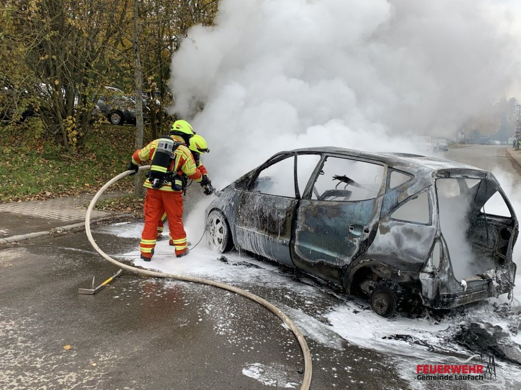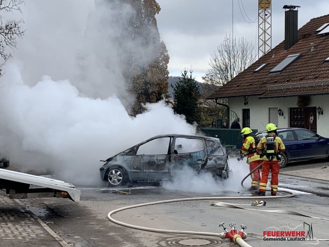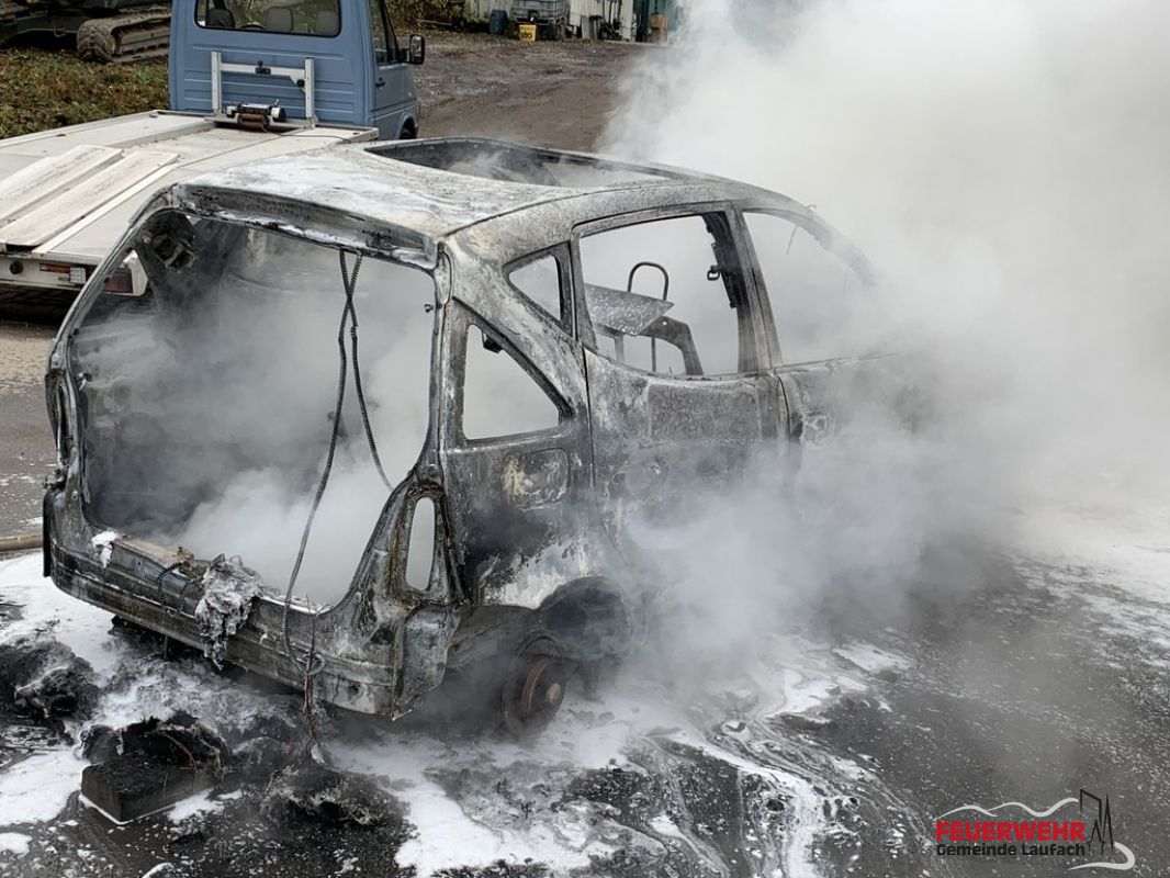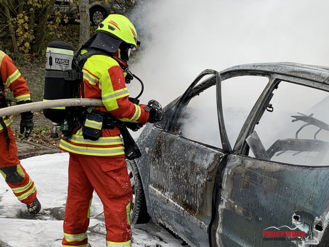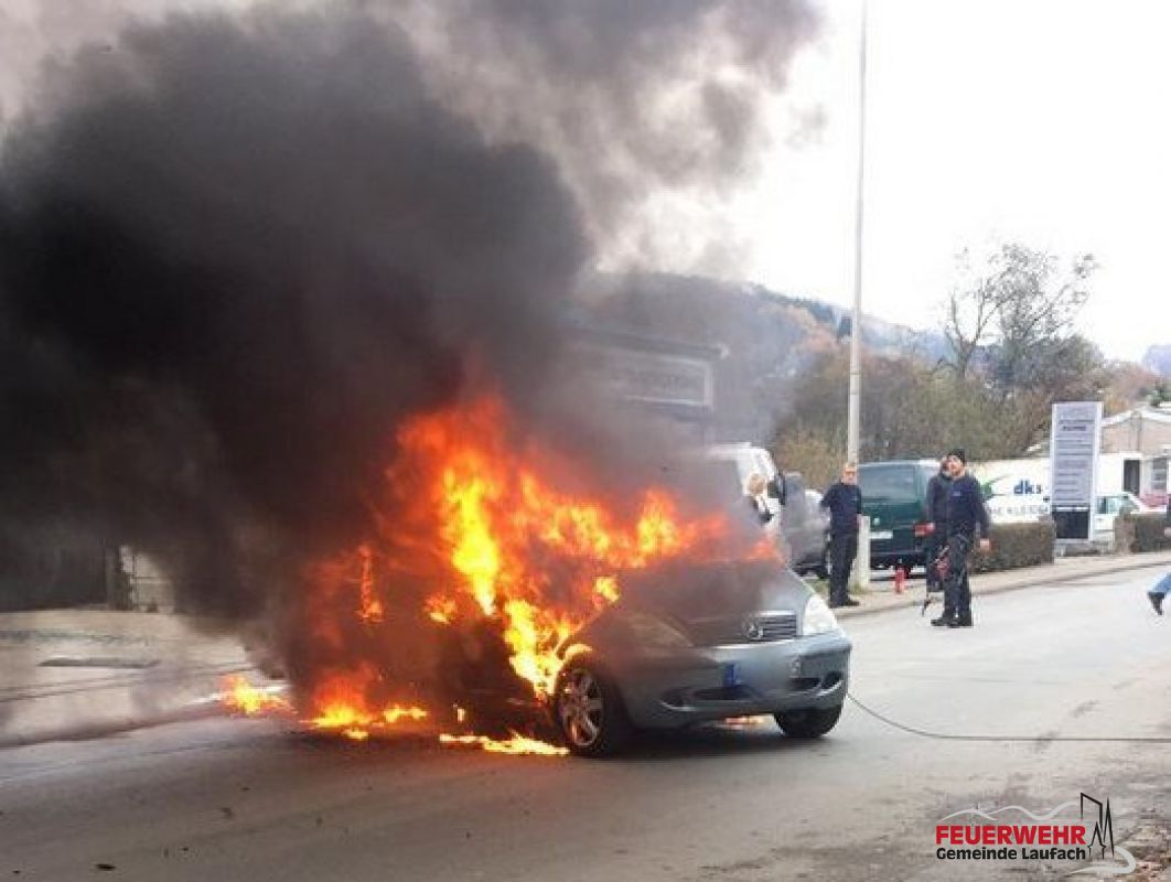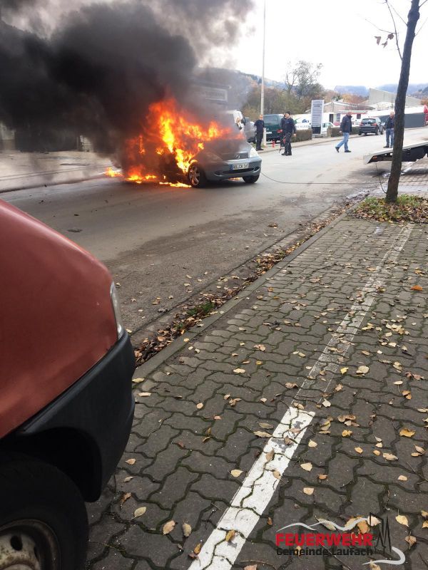 Zu einem brennenden PKW wurde die FEUERWEHR Gemeinde Laufach ins Gewerbegebiet Ost alarmiert. Bei Eintreffen wurde ein im Vollbrand stehender PKW mitten auf der Straße vorgefunden. Das Fahrzeug war in einer Kfz-Werkstatt bei Schweißarbeiten in Brand geraten und wurde durch Beteiligte brennend aus der Halle geschleppt. Personen waren nicht zu Schaden gekommen.