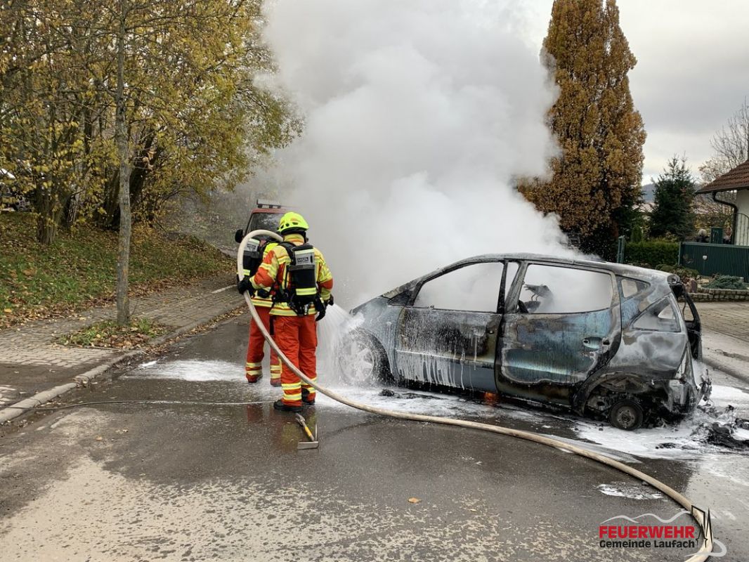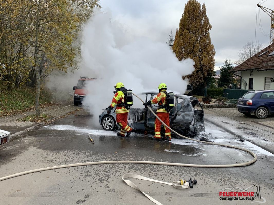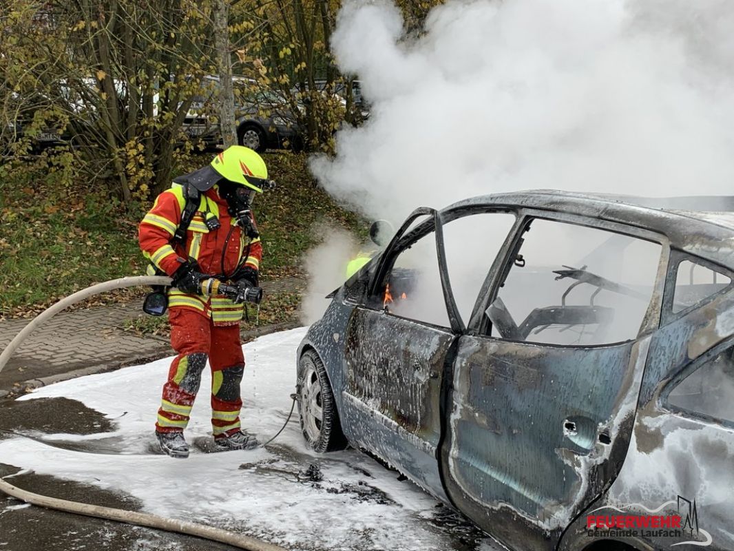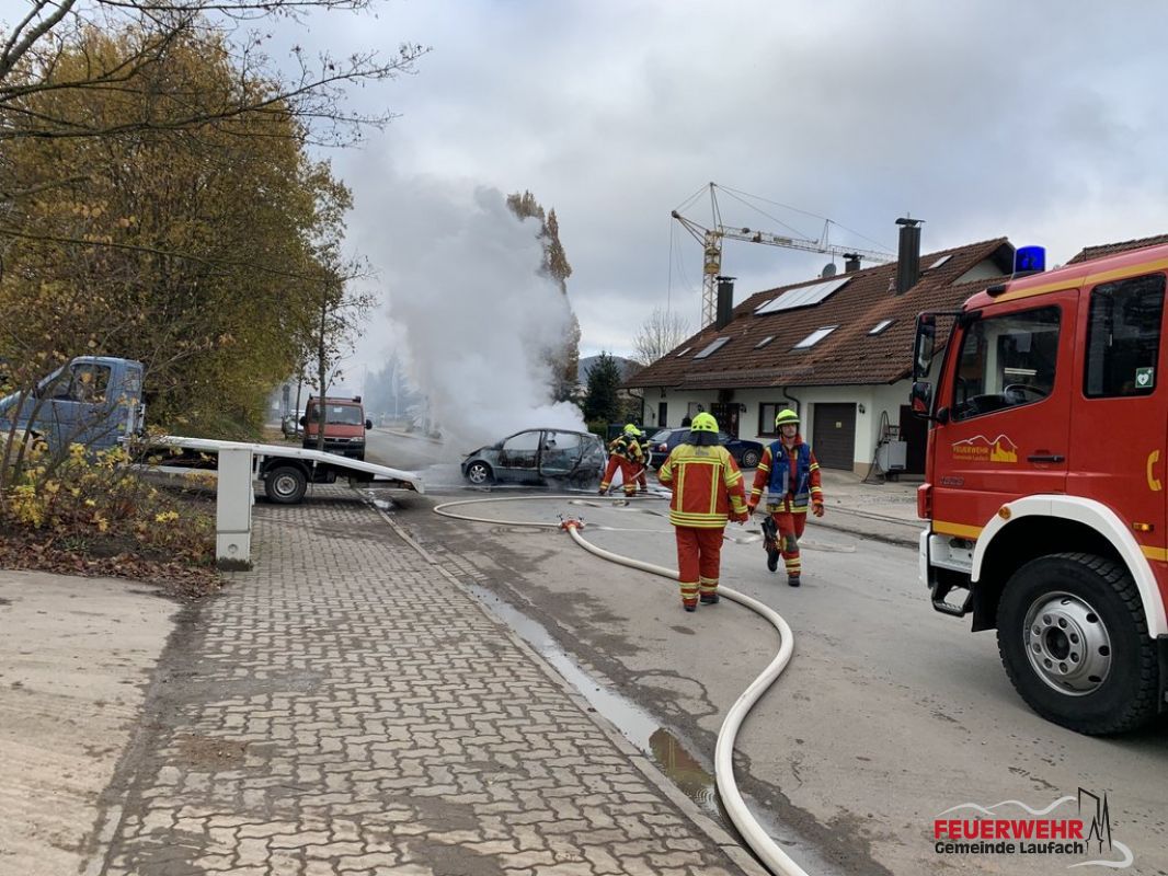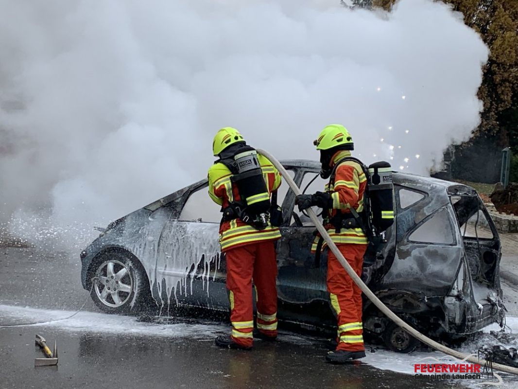 Zu einem brennenden PKW wurde die FEUERWEHR Gemeinde Laufach ins Gewerbegebiet Ost alarmiert. Bei Eintreffen wurde ein im Vollbrand stehender PKW mitten auf der Straße vorgefunden. Das Fahrzeug war in einer Kfz-Werkstatt bei Schweißarbeiten in Brand geraten und wurde durch Beteiligte brennend aus der Halle geschleppt. Personen waren nicht zu Schaden gekommen.