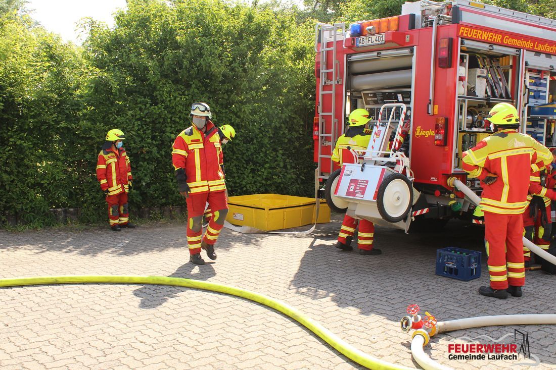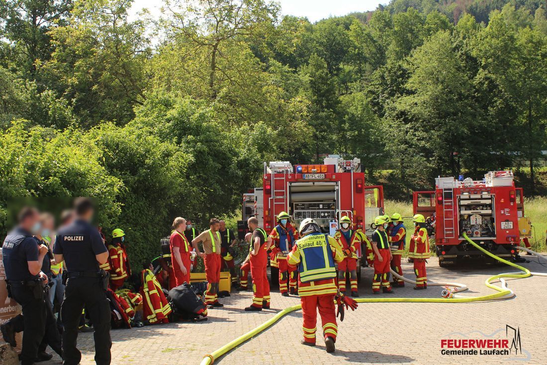 Einsatzleiter und stv. Kommandanten, Marco Laske, standen rund 40 Feuerwehrleute mit neun Fahrzeugen zur Verfügung. Neben den Kräften aus Laufach befanden sich noch die Wehren Sailauf und Hösbach, Kreisbrandmeister Markus Rohmann sowie Bürgermeister Friedrich Fleckenstein an der Einsatzstelle.