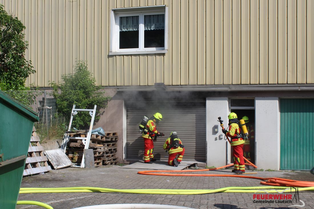 Zu einem Garagenbrand kam es am Dienstag, 03.06., in der Hauptstraße in Laufach. In dem Gebäude, in dem die Laufacher Moschee sowie eine Wohnung und die Betriebsräume einer ortsansässigen Malerfirma untergebracht sind, brach gegen 9:39 Uhr ein Brand aus. Die Garage ist in südlicher Lage in das Objekt integriert.
