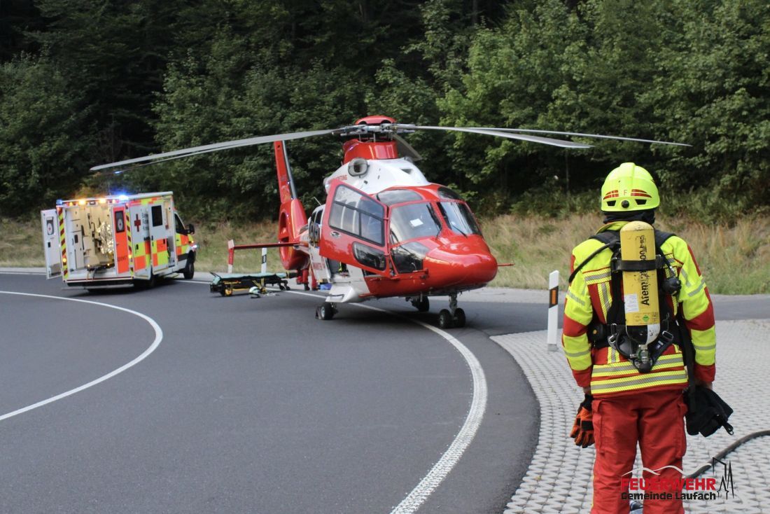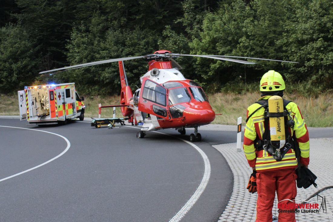 Zu einem Verkehrsunfall mit zwei Motorradfahrern wurde die FEUERWEHR Gemeinde Laufach um 18.48 Uhr auf die B26 in Richtung Sieben Wege alarmiert. Da sehr früh bekannt war, dass ein Rettungshubschrauber im Anflug war, wurde noch auf der Anfahrt die Alarmierung der Feuerwehr Rothenbuch veranlasst, um auf der Kreuzung Sieben Wege eine Sperrung für die Landung des "Christoph Mittelhessen" vorzubereiten und die Crew an die Einsatzstelle zu transportieren.