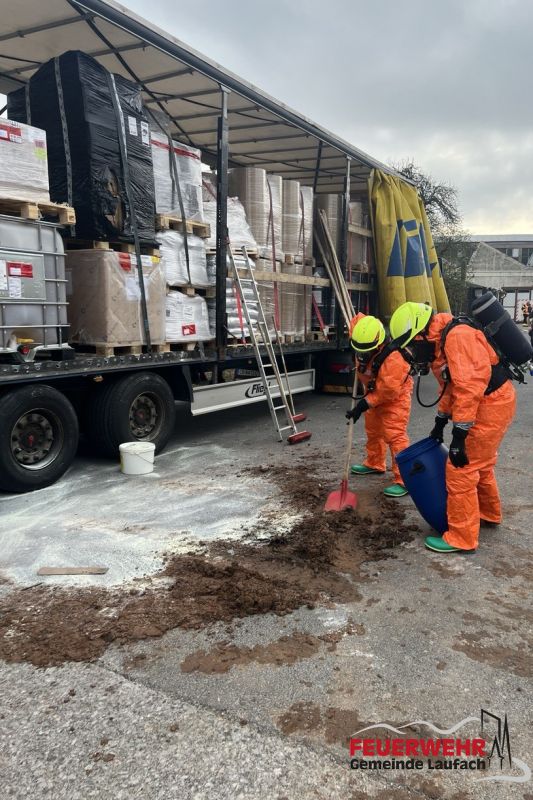 In Waldaschaff kam es in der Walburgstr. zu einem Austritt von Essigsäure aus einem mit Stückgut beladenen LKW. Wir unterstützten bei den Aufräumarbeiten.