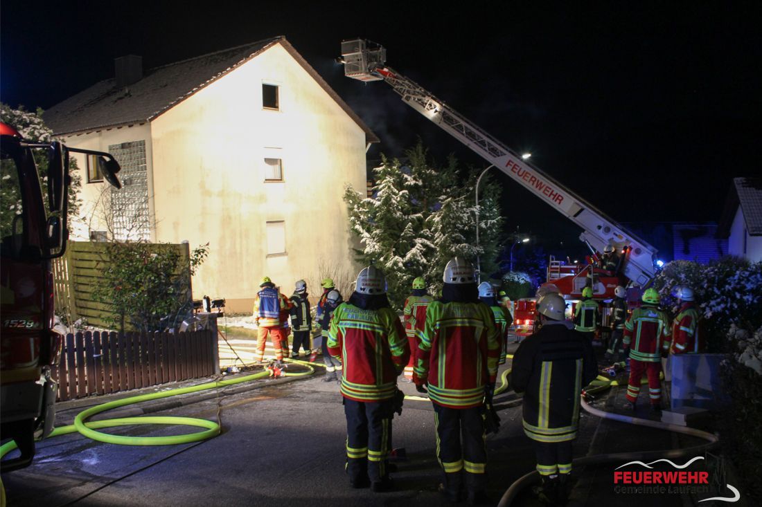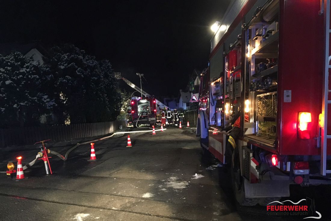Die FEUERWEHR Gemeinde Laufach war mit 38 Personen und acht Fahrzeugen an der Einsatzstelle. Zusätzlich waren die Wehren Sailauf (2 Fzg.) und Hösbach (DLK) sowie Kreisbrandinspektor Otto Hofmann an der Einsatzstelle.