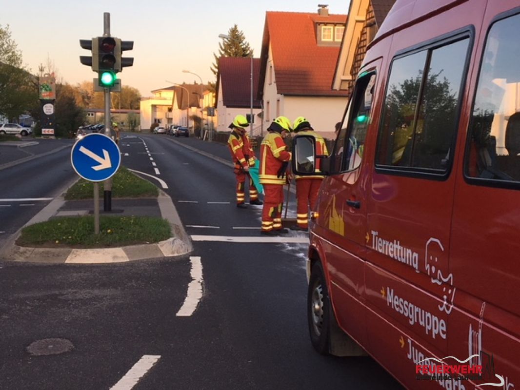 Auf der B 26 zwischen Tankstelle und Tegut wurde eine etwa 200 Meter lange Ölspur mittels Ekoperl abgestreut.