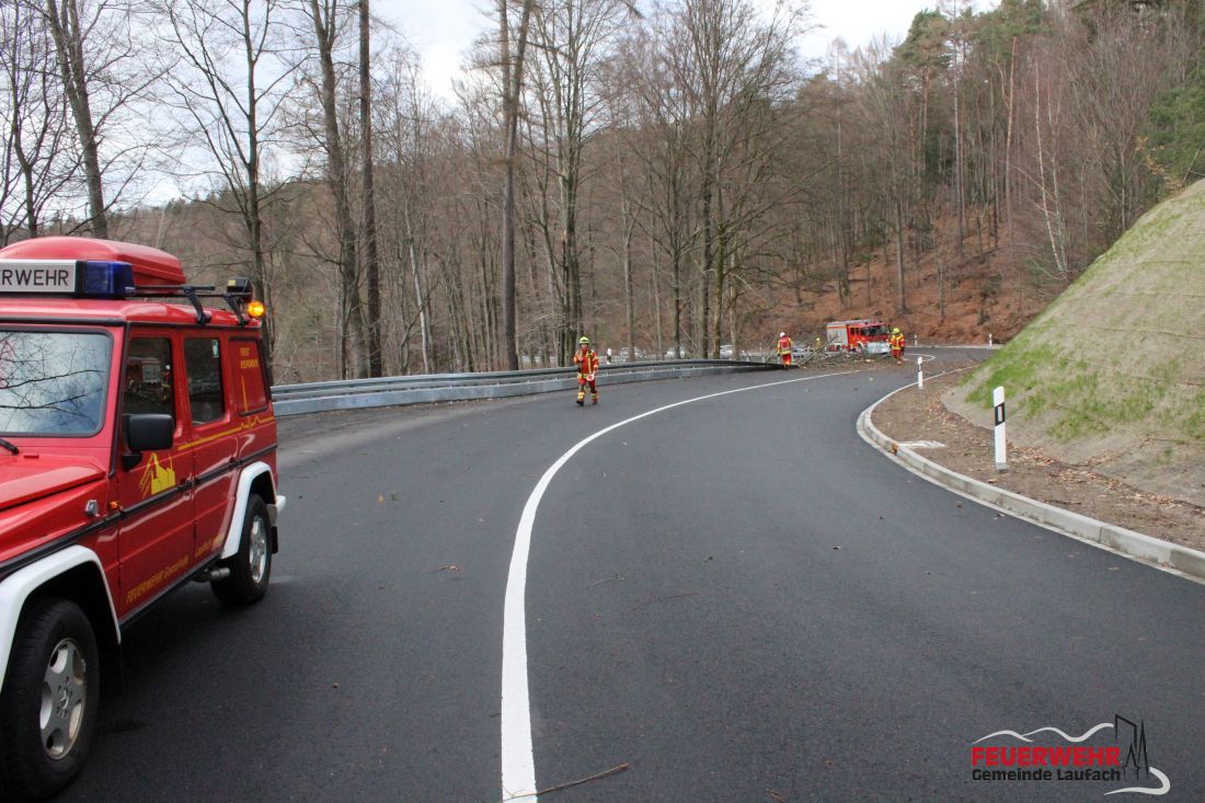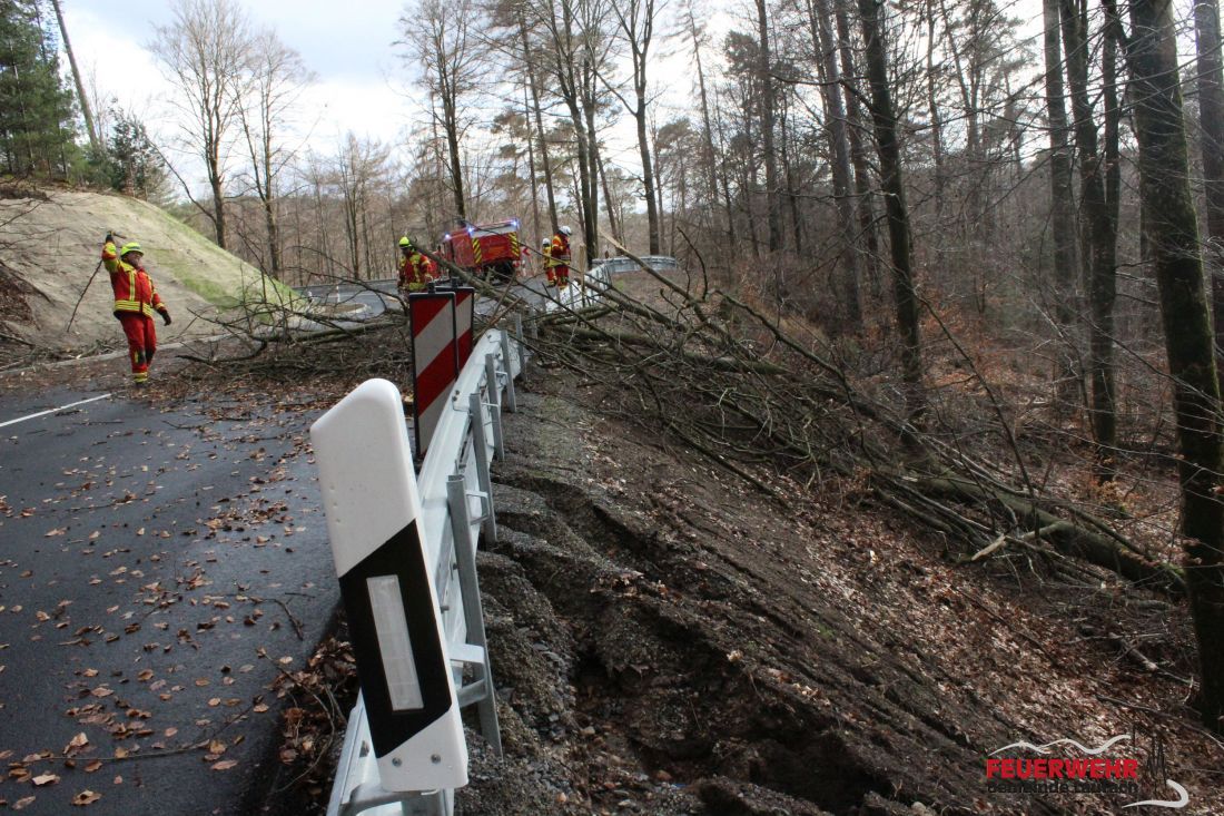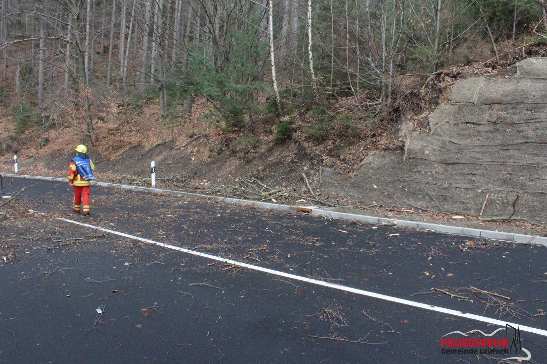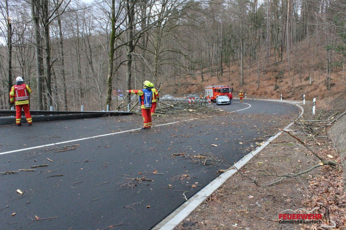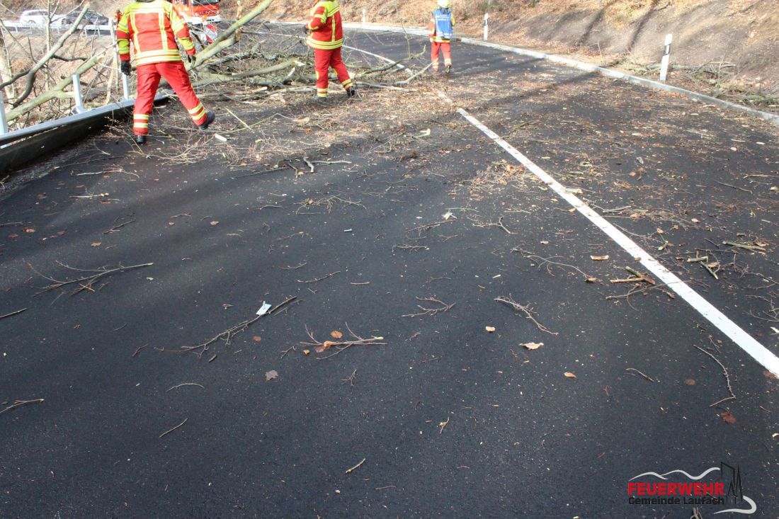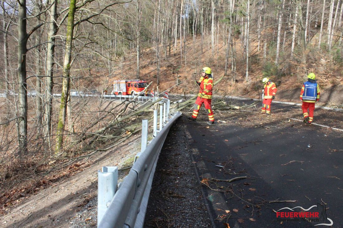 Am Sonntagnachmittag kam es aufgrund des Sturmtiefs "Eberhard" zu einem umgestürzten Baum auf der B 26
