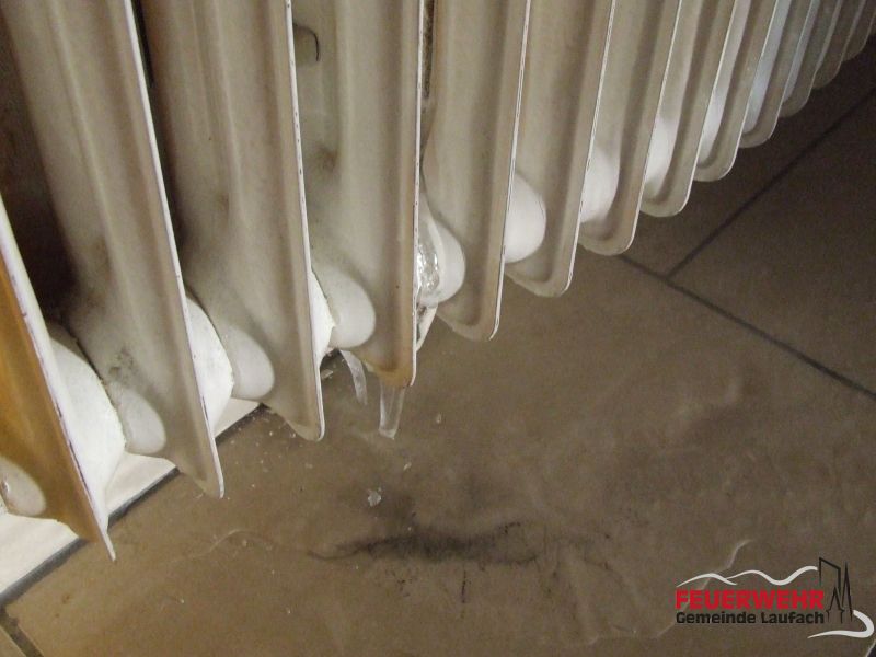 Ferner war das gesamte Heizsystem eingefroren und die Heizkörper vom Eis aufgeplatzt.