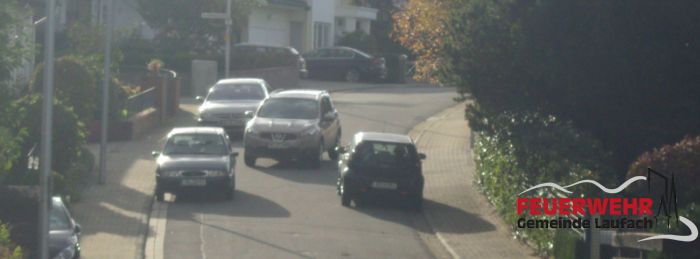- In Kreuzungs- und Einmündungsbereichen darf nicht geparkt werden. Unsere Löschfahrzeuge mit großem Wendekreis brauchen diesen Platz zum Ausscheren.
