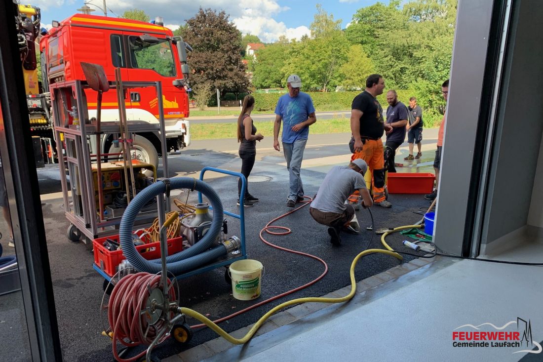 Am Montag, dem 19. August wurden zwischen 13:00 Uhr und 17:00 Uhr weitere 30 Arbeitsstunden investiert, um alle benutzen Geräte und Fahrzeuge wieder zu reinigen, zu überprüfen und die Betriebsstoffe zu ergänzen.Danke an dieser Stelle allen Mitarbeiterinnen und -Mitarbeitern.