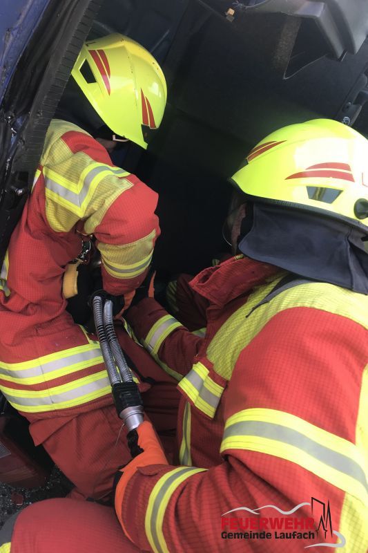Am Samstag stand der praktische Teil in unserem Übungsbereich auf dem gemeindlichen Bauhof an. In zwei Kleingruppen von je 8 Personen wurde mit den Ausbildern von S-Gard individuelle Einsatzszenarien abgearbeitet. Nach dem Grundsatz "Golden Periode of Trauma" wurden die Verletzten innerhalb von 10 bis max. 20 Minuten aus dem verunfalltem Kraftfahrzeug befreit.