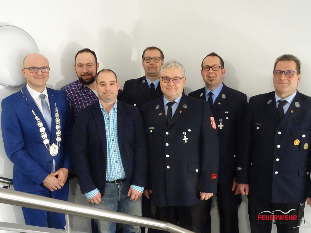 Beim diesjährigen Neujahrsempfang der Gemeinde Laufach ehrte Bürgermeister Friedrich Fleckenstein am Sonntagnachmittag auch wieder einige Kameraden für deren langjährigen aktiven Dienst. Für 25 Jahre aktiven Dienst wurde Heiko Kunkel, für 40 Jahre aktiven Dienst wurden Lothar Faust, Joachim Kiel, Rigobert Schubert sowie Hans-Peter und Matthias Völker geehrt.