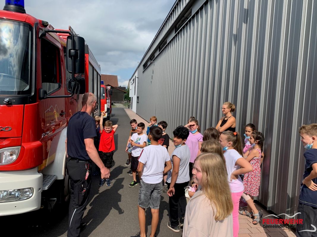 So auch am 19. Juli 2021, als insgesamt 35 Kinder der Klassen 3a und 3b zusammen mit ihren Lehrerinnen Frau Carl und Frau Herzog im Feuerwehrhaus Laufach vorbeischauten.