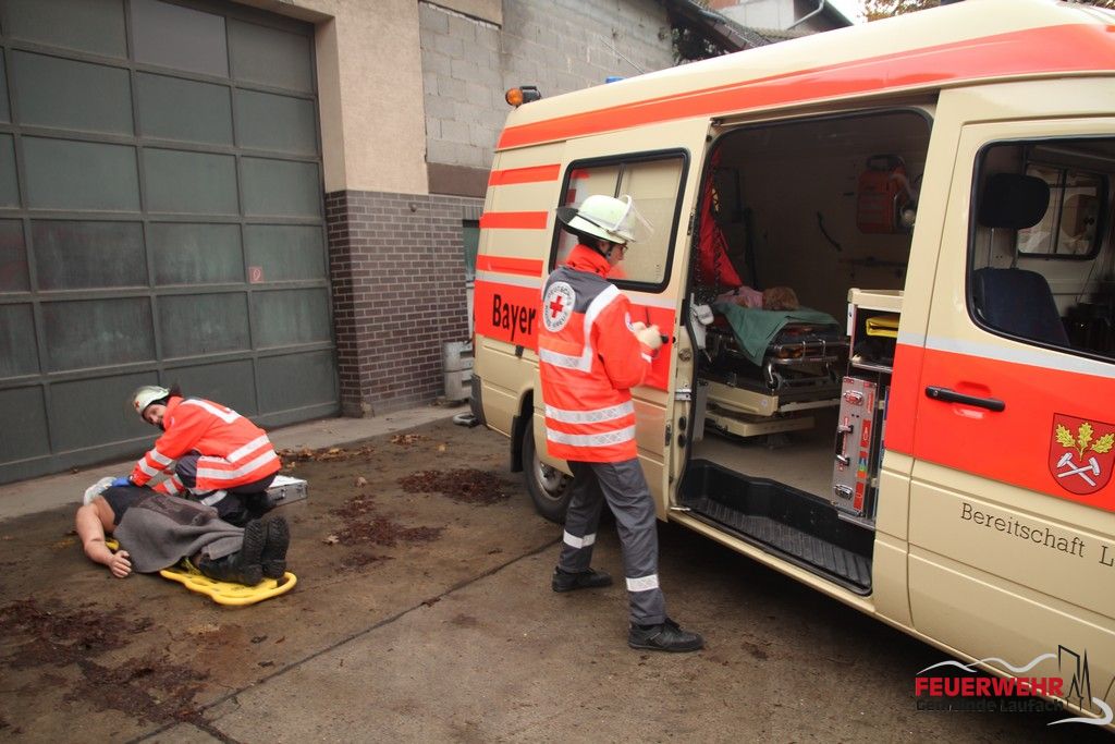 Hier galt es, dem Verletzten zeitnah den Brustbereich freizuräumen, so dass dieser wieder frei atmen konnte. Dies natürlich nicht ohne den notwendigen Eigenschutz außer acht zu lassen. Eine Maßnahme, die sehr zügig umgesetzt wurde, so dass der Verletzte ebenfalls zeitnah an das BRK übergeben werden konnte.
