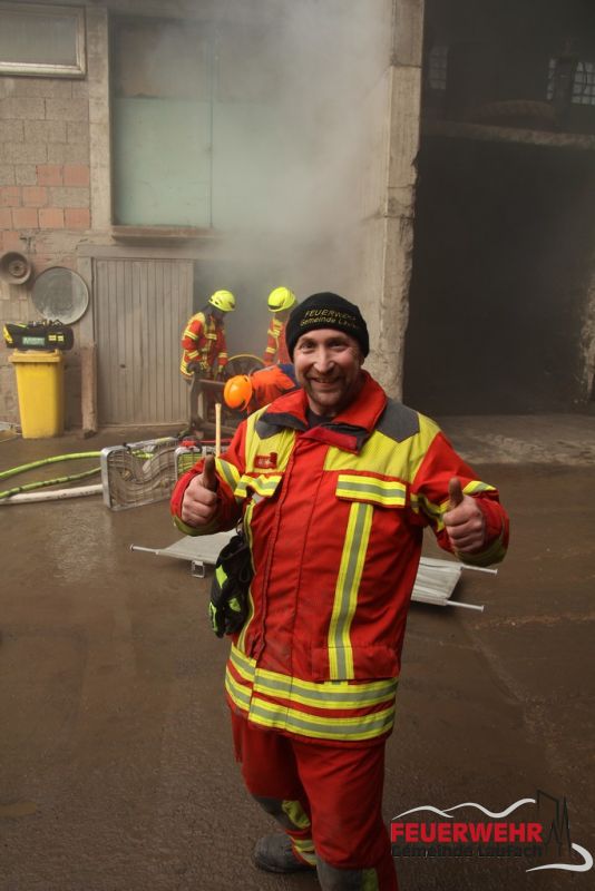Als Übungsobjekt stand uns die Firma Schmittner im Laufacher Gewerbegebiet zur verfügen, ein ganz GROSSES Danke an Rudolf Schmittner. Er hat uns nicht nur das Gelände und Personal für die Übung zur Verfügung gestellt, sondern auch noch eine großzügige Beigabe für die anschliessende Übungsbesprechung mit Verpflegung oben drauf gegeben. An dieser Stelle ein herzliches „Vergelts Gott“ an die Firma Schmittner.