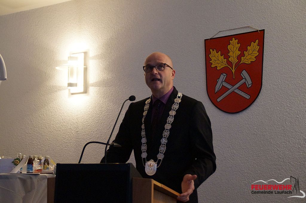 Bürgermeister Friedrich Fleckenstein würdigte in seinem Jahresrückblick explizit die Leistungen der FEUERWEHR Gemeinde Laufach sowie der BRK-Bereitschaft.