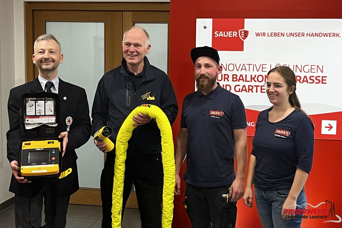 Am 24. November hat die Feuerwehr Gemeinde Laufach ihr erstes Weihnachtsgeschenk erhalten: Die In Laufach ansässige Firma Sauer (Sonnenschutz, Balkongeländer) hatte je 1.250 € an die BRK Bereitschaft und die Laufacher Feuerwehr gespendet mit der Bitte, hiervon Rettungsgeräte zu beschaffen.