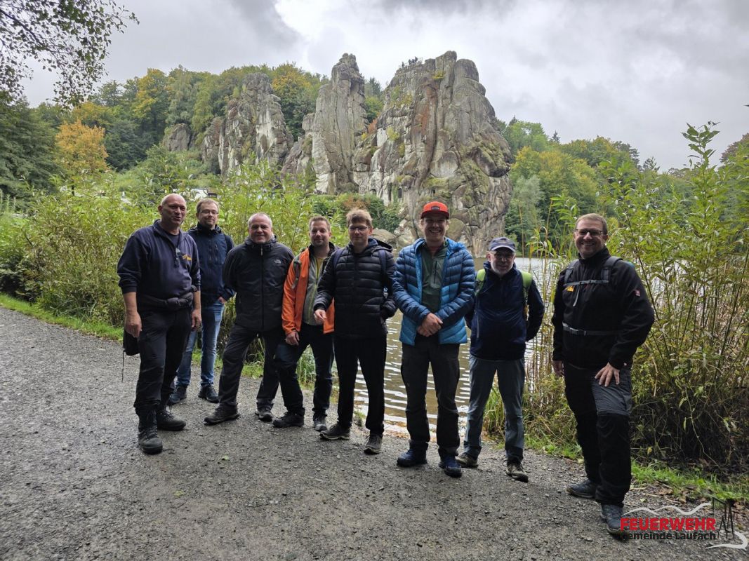 Der Sonntag stand im Zeichen der traditionellen Wanderung. Das Wetter hatte sich leicht gebessert, als wir uns vom Herrmannsdenkmal auf den Weg zur Ruine Falkenburg und weiter zu den markanten und mystischen Externsteinen machten – Klassiker des Teutoburger Waldes.