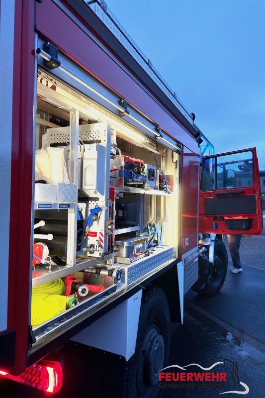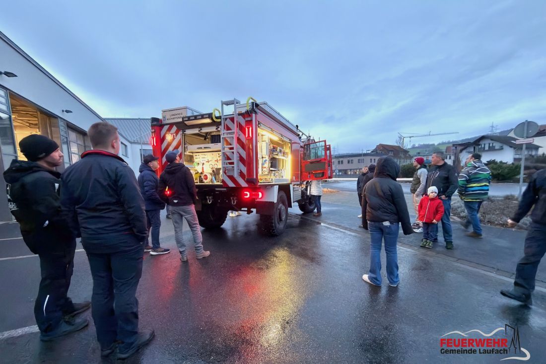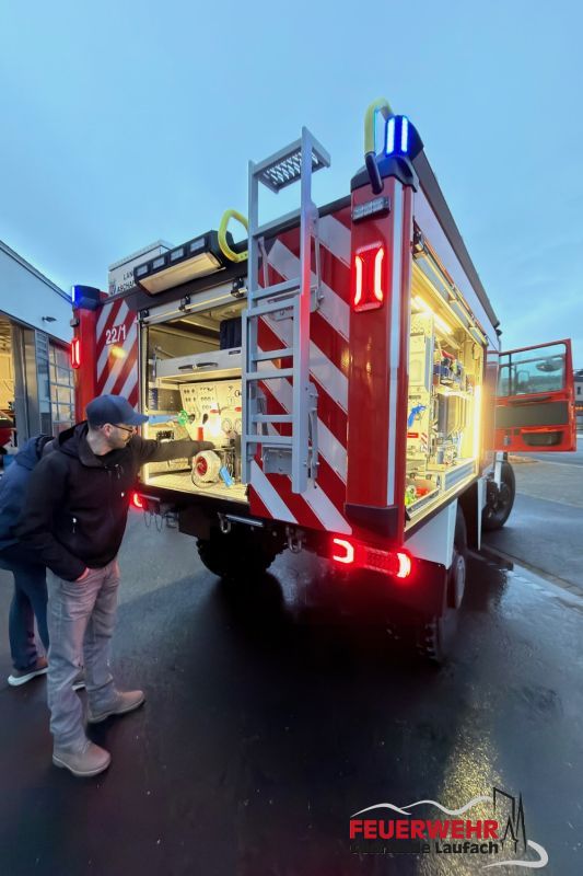 Am Abend des 19. Dezember konnte das Fahrzeug für die Feuerwehr der Gemeinde Laufach erstmals am Feuerwehrhaus in Augenschein genommen werden. In den kommenden Wochen und Monaten beginnen nun die Schulungen der Maschinisten sowie die Einweisung der gesamten Mannschaft in die neue Technik.
