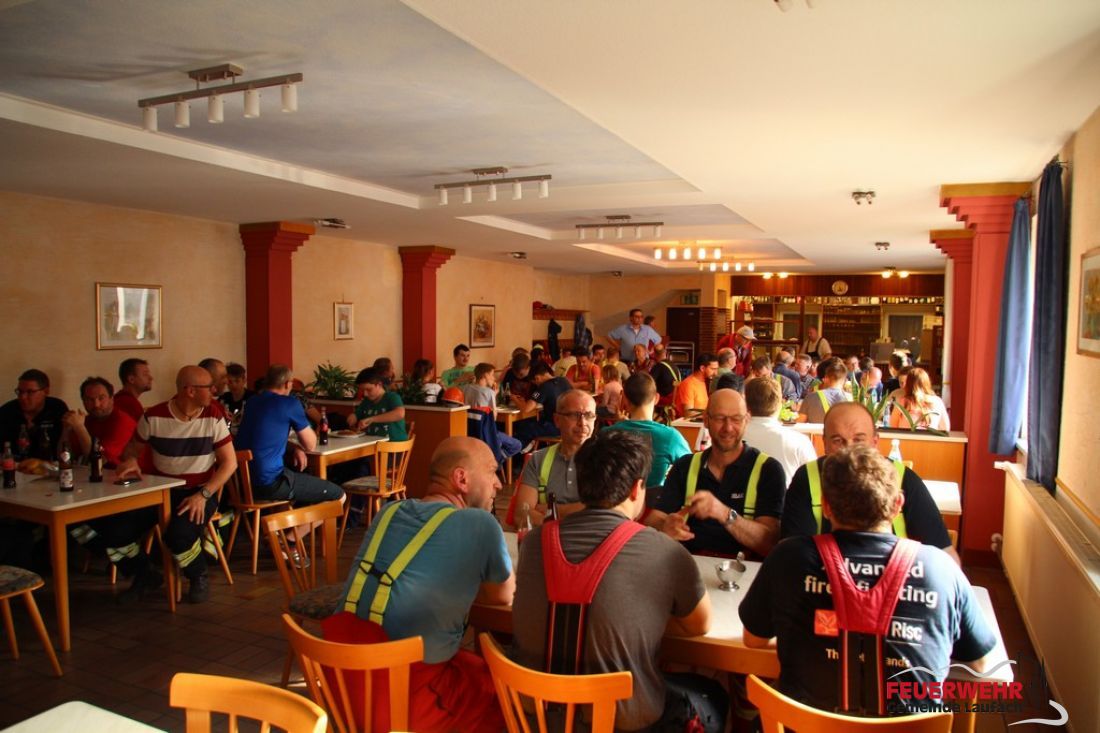 Als Wasserentnahmestelle diente unter anderem klassisch der aufgestaute Laufach-Bach. Neben Brandbekämpfung und Menschenrettung musste ein Übergreifen auf anliegende Gebäude unterbunden werden. Während der Übung wurde dazu noch ein Atemschutznotfall simuliert.