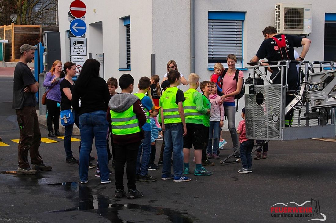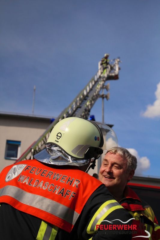 Für unsere jungen Kameraden war die Frühjahrsübung auch etwas Besonderes. So wurde die Jugendfeuerwehr durch den Personalmangel bei den Aktiven deutlich stärker gefordert und unsere Kinderfeuerwehr nutzte nach der Übung die Gelegenheit mit der Drehleiter aus Waldaschaff das Werksgelände von oben zu bestaunen. Auch begleitet durch unseren Dienstherren und 1. Bürgermeister Friedrich Fleckenstein.