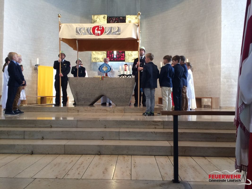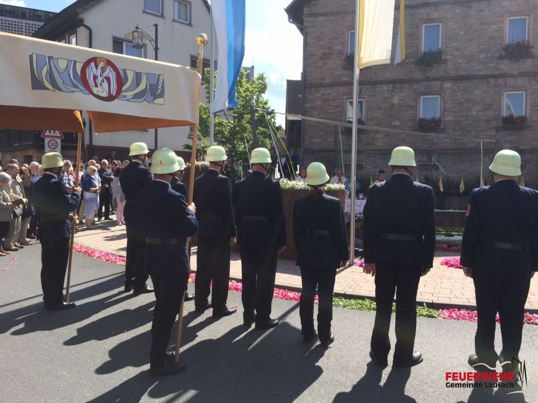 Sowohl beim Vorabendgottesdienst in Hain als auch beim Feiertagsgottesdienst in Laufach war die Feuerwehr als Begleiter des Allerheiligsten und als Himmelträger Teil der Prozession. Ferner übernahm die Feuerwehr auch die Verkehrsabsicherung.