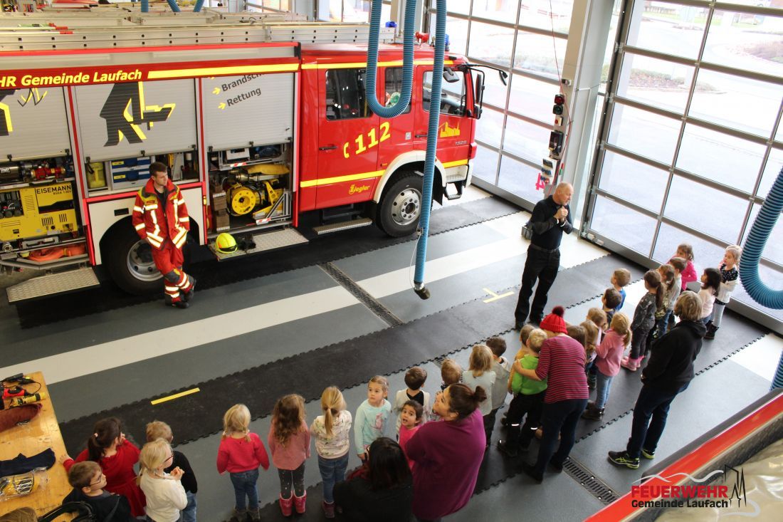Am 9. Januar 2019 waren 29 Mädchen und Buben aus dem"Aktivpark" des Kindergarten Laufach mit 4 Betreuerinnen und Betreuern zu Besuch im neuen Feuerwehrhaus, um sich im neuen Domizil mit großen Kinderaugen umzusehen..