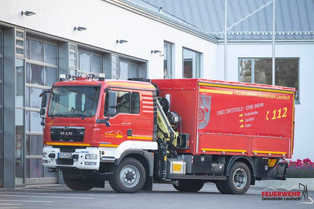 Der neue Versorgungs-Lkw mit Kran, kurz V-Lkw-Kran genannt, dient wegen seines Aufbaus mit Plane und 1,5-Tonnen-Ladebordwand in erster Linie als Nachschubfahrzeug, er wird jedoch durch die Zusatzausstattung Kran deutlich mehr in den Bereich technische Hilfeleistung gerückt.