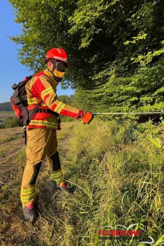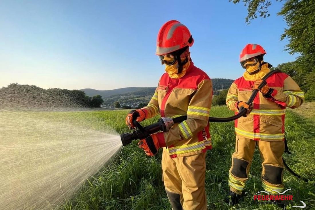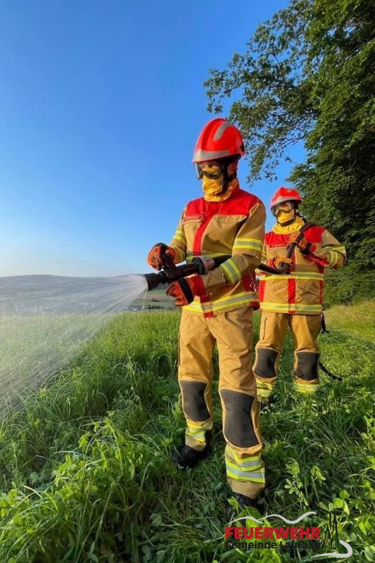 Seit dem Juni 2021 haben wir 20 Sätze neue Schutzkleidung speziell für Waldbrände. Die derzeitige Einsatzkleidung ist für die bei Gebäudebränden erforderliche hohe Schutzwirkung ausgelegt. Bei Vegetationsbränden ist dieses Schutzniveau aber nicht nur unnötig, es stellt sogar eine unzumutbare körperliche Belastung dar, da Jacken und Hosen nach HUPF sehr dick und sehr schwer sind – im Waldbrand aber oft viele Kilometer und Höhenmeter zu Fuß zurückgelegt werden.
