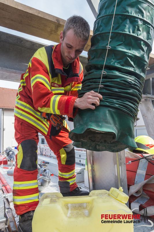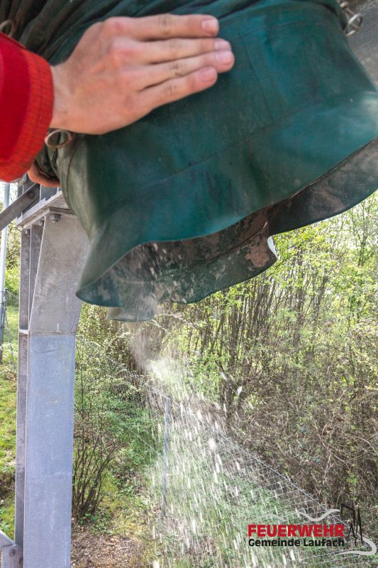 Die Ausgabe des Ölbinders erfolgt künftig zu festen Zeiten, Montags von 19 bis 21 Uhr und Freitags von 12 bis 13 Uhr sowie bei akutem Bedarf wie z.B. einem Ölteppich auf dem Main oder größeren Ölspuren und Ölunfällen über die Logistkschleife 28-477 der FEUERWEHR Gemeinde Laufach.