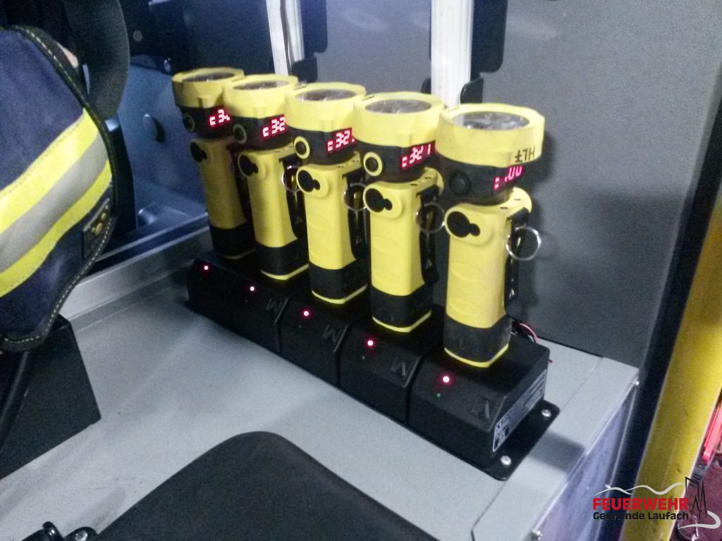 Nachdem sich bei einigen Einsätzen in der jüngeren Vergangenheit gezeigt hat, dass die mit dem HLF im Jahr 2007 beschafften Handlampen nicht das optimale an Zuverlässigkeit mehr waren, wurde kurzfristig der Austausch gegen moderne Handlampen vom Typ ADALIT® L-3000 inkl. Fahrzeugladeerhaltung vorgezogen.