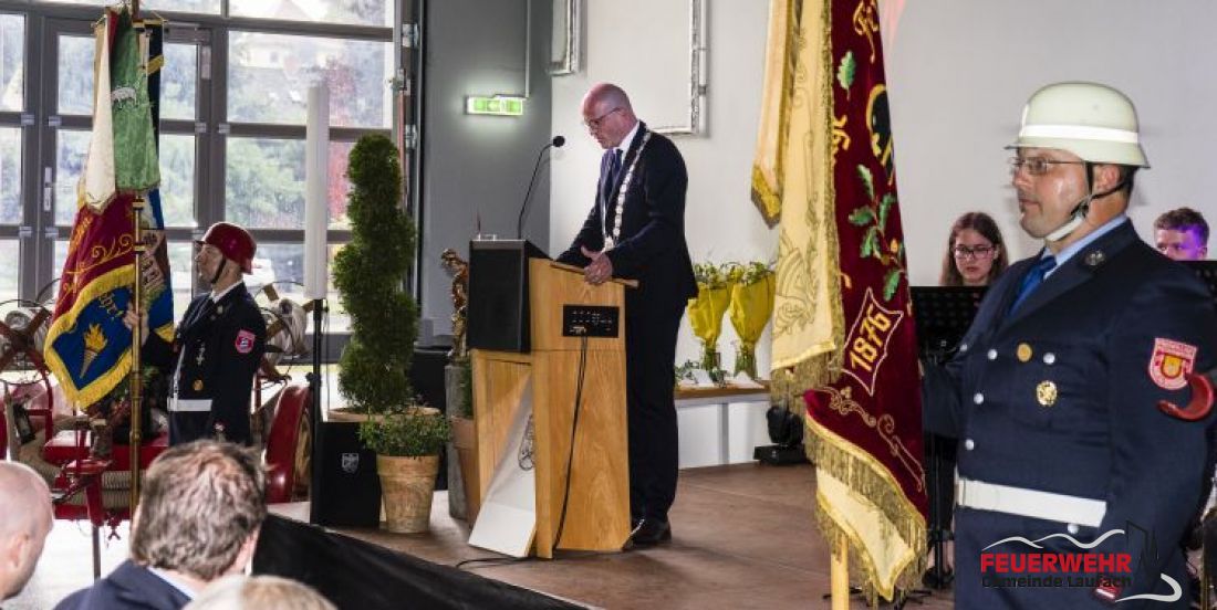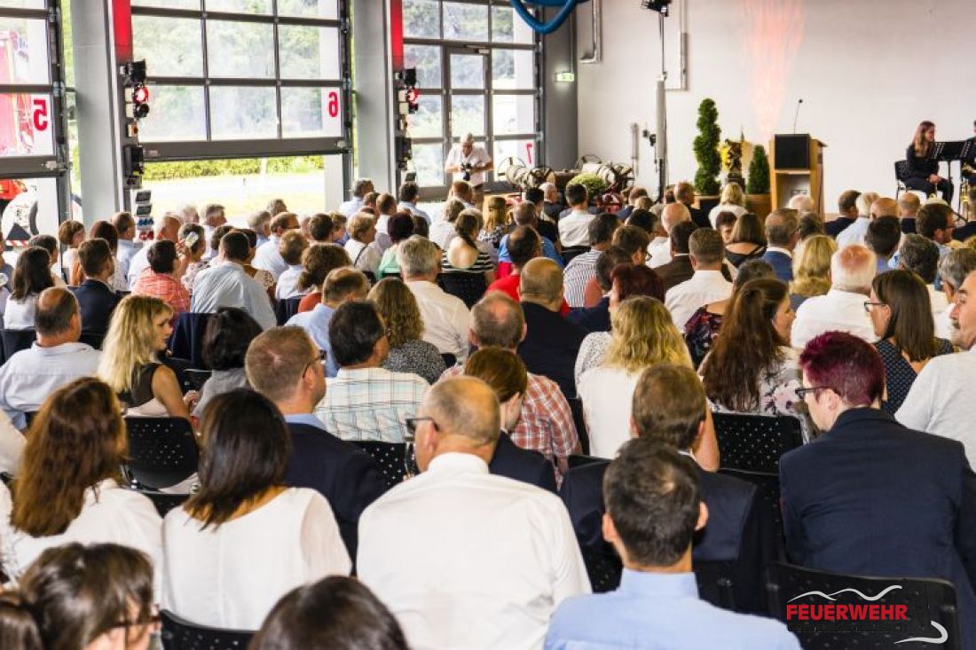 Am Samstag, dem 28. Juli fand der feierliche Festakt in der Fahrzeughalle statt. Bürgermeister Fleckenstein konnte fast 250 Besucher begrüßen – aus den Reihen von Politik, Verwaltung, Regierung und Landratsamt, den am Bauprojekt Beteiligten, den Mitarbeitern aus Verwaltung und Bauhof sowie rund 60 Aktiven und jugendlichen Feuerwehrleuten, teils mit Partnern.
