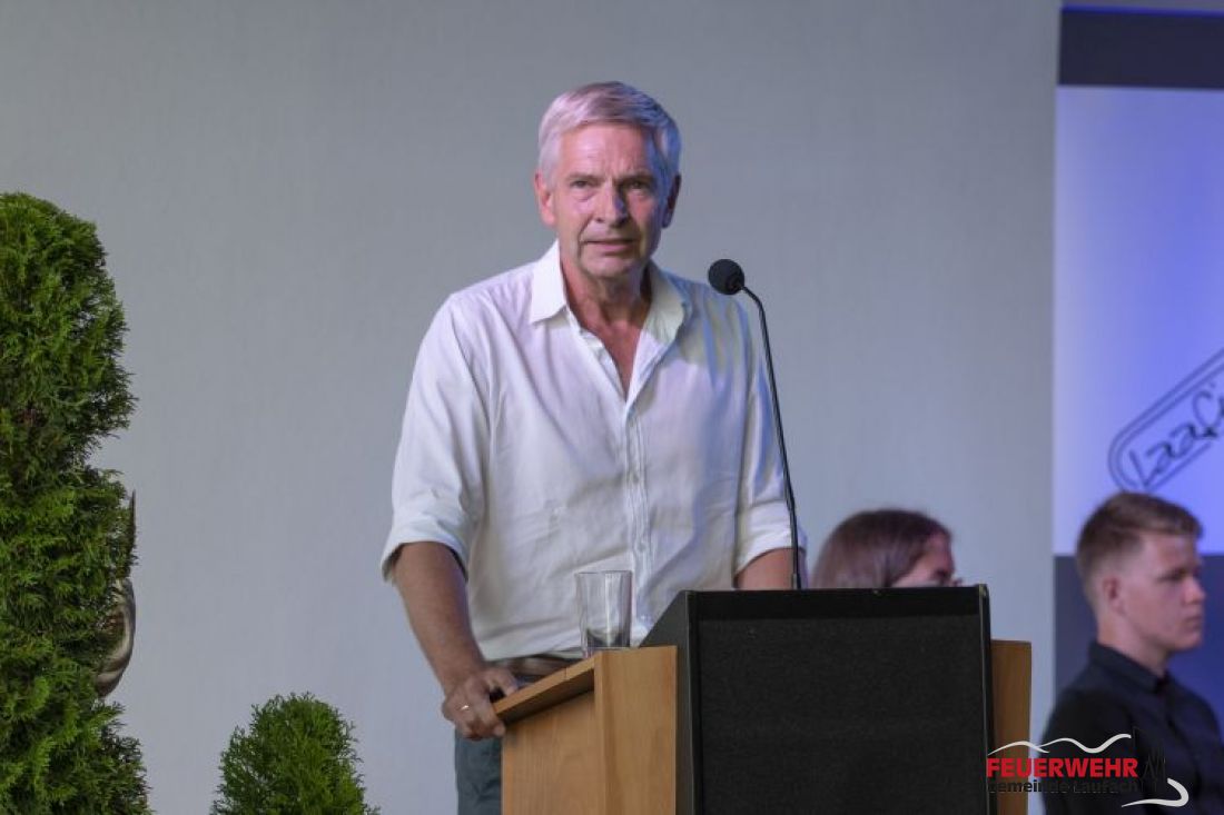 Stellv. Landrat Valentin Weber lobte Wehr und Gemeinde für ihre Arbeit. KBR Karl-Heinz Ostheimer lobte die Gemeinde für ihre Weitsicht und die Investition zugunsten des Erhalts des Ehrenamtes.